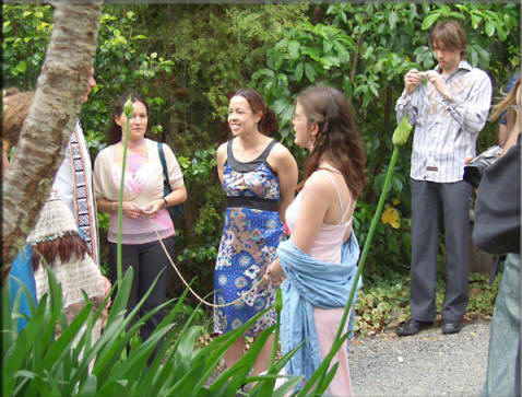 The String Ceremony A ball of string was passed from hand to hand so that everyone could be connected and share in the blessing with the couple.