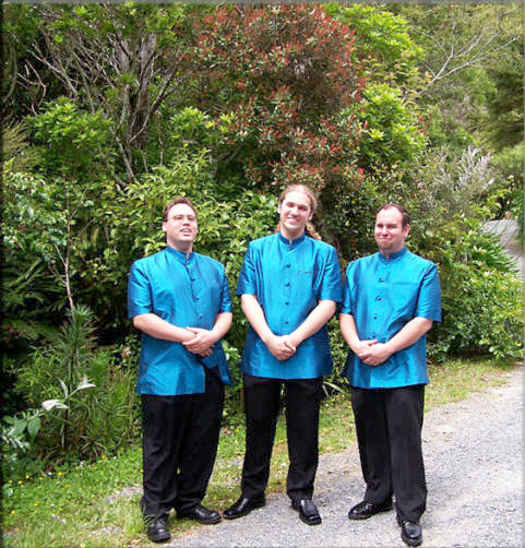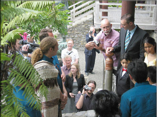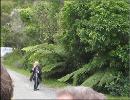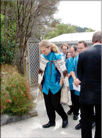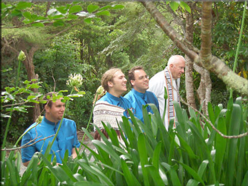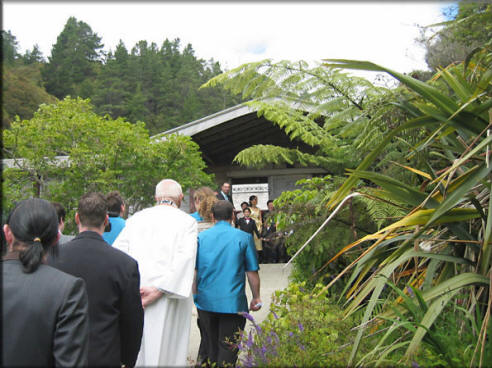 Paul, Erik (wearing the family kakahu), Svend, Fr. Geoff approach the first gate.