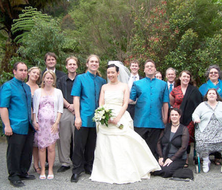 Rachael, Erik with family and friends who gathered together to celebrate their marriage.