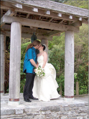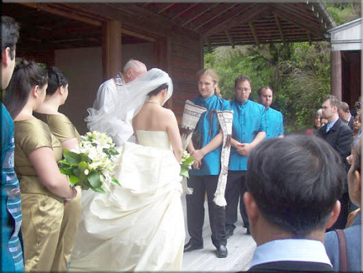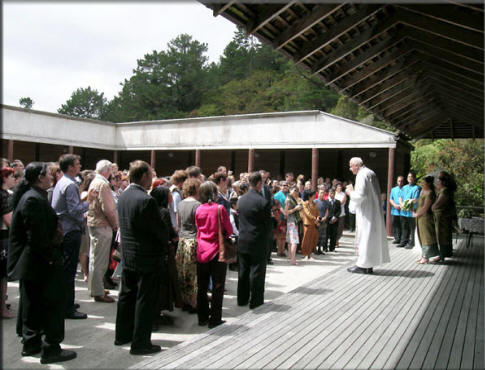 Watching everyone arrive. Fr. Geoff Broad, Parish Priest from St. Francis de Sales in Island Bay, waits to conduct the marriage ceremony. |