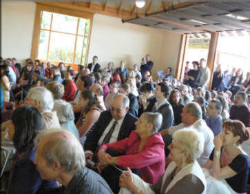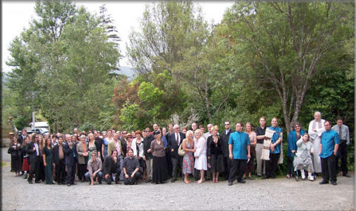 The groom and his supporters, waiting to be called forward, gather for a photograph.