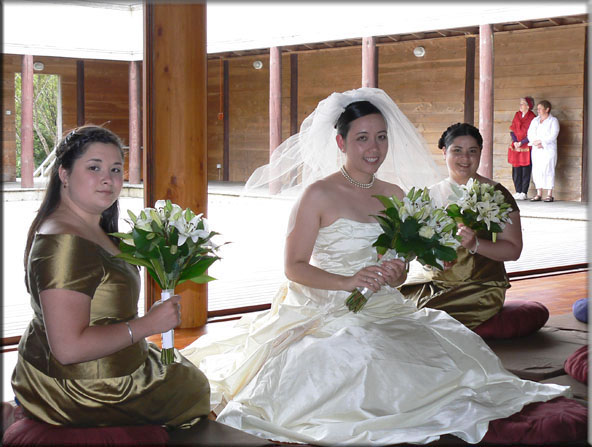 Everyone then moved into the Temple to be received by the Monks who performed a Buddhist ceremony and blessing of the newly married couple. |